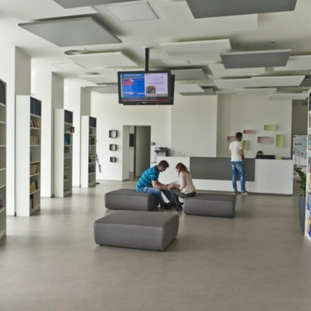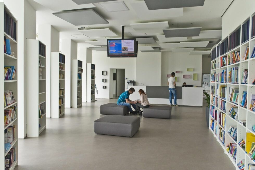 Kampus nabízí špičkové technické vybavení, studijní prostory, místa k relaxaci a InfoHUB, kombinaci knihovny a coworkingu, kde se studenti setkávají s akademiky i odborníky z praxe.