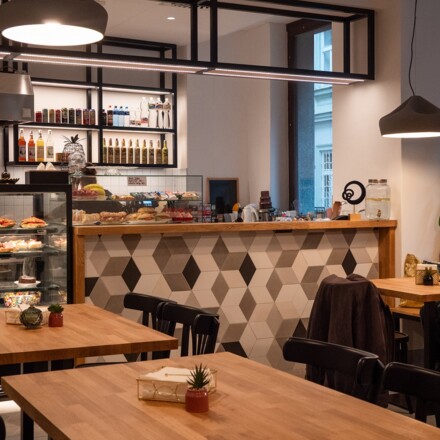 Pro něco dobrého k jídlu i pití můžete zaskočit do kavárny v přízemí budovy fakulty. Pár minut od ní pak sídlí i univerzitní menza Arnošta z Pardubic, kde za rozumnou cenu seženete plnohodnotný a chutný oběd přímo v centru Prahy.