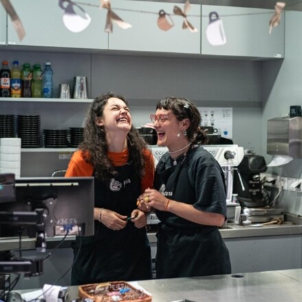 Na začátku letního semestru 2025 získala fakulta jedinečný prostor v podobě kavárny. Studenti ji už od ledna sami provozují a během slavnostního otevření, kam dorazila rektorka, děkanka i spousta lidí z fakulty, bylo cítit, že tohle místo bude opravdu fungovat jako srdce fakulty. Nabízí kávu na všechny způsoby (včetně rostlinných mlék), něco dobrého k zakousnutí a hlavně prostor, kde se může potkávat celá akademická obec i mimo výuku.