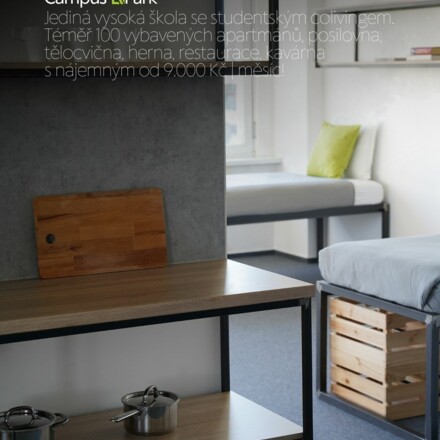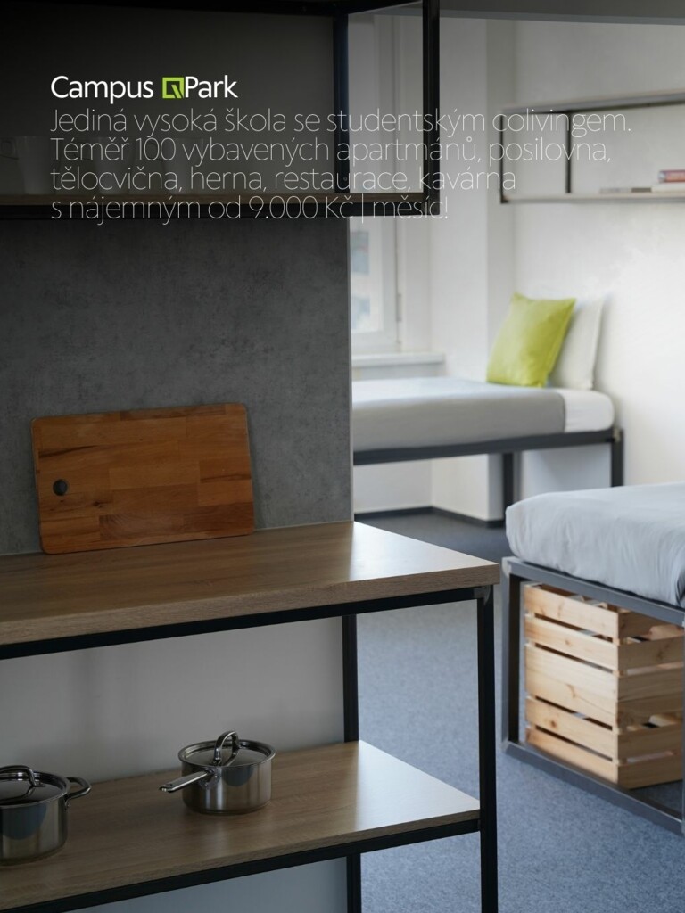 10. Campus Park - ubytování ve více než 100 moderních plně vybavených apartmánech s posilovnou, tělocvičnou, prádelnou, hernou, restaurací, kavárnou, coworkingem i rozsáhlým venkovním pozemkem. Vysokoškolský kampus, který nemá v ČR konkurenci!