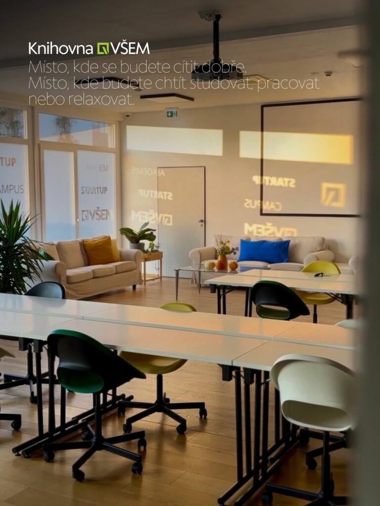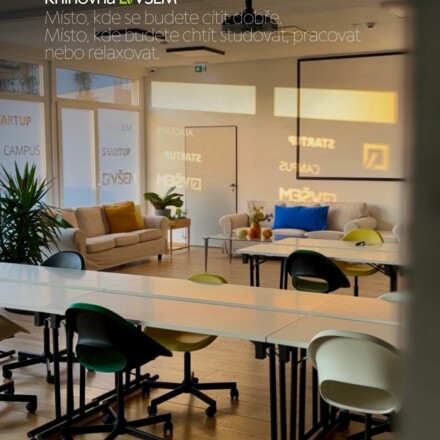 9. Moderní prostory VŠEM v Campus Park o rozloze více než 10.000 m2 s multifunkčními učebnami, knihovnou, studovnou, klubem, kavárnou, restaurací, kancelářemi StartUp VŠEM, streamovacím a podcastovým studiem i se 100 studentských apartmánů.